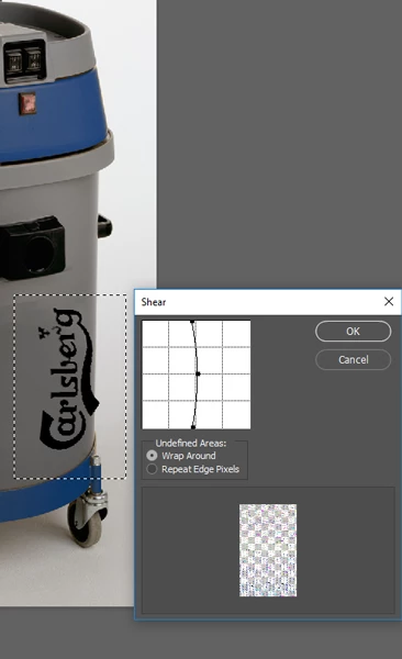 3. Draw a selection box around the logo, leaving about half the depth of the logo around each side. Go to Filter/distort/shear.