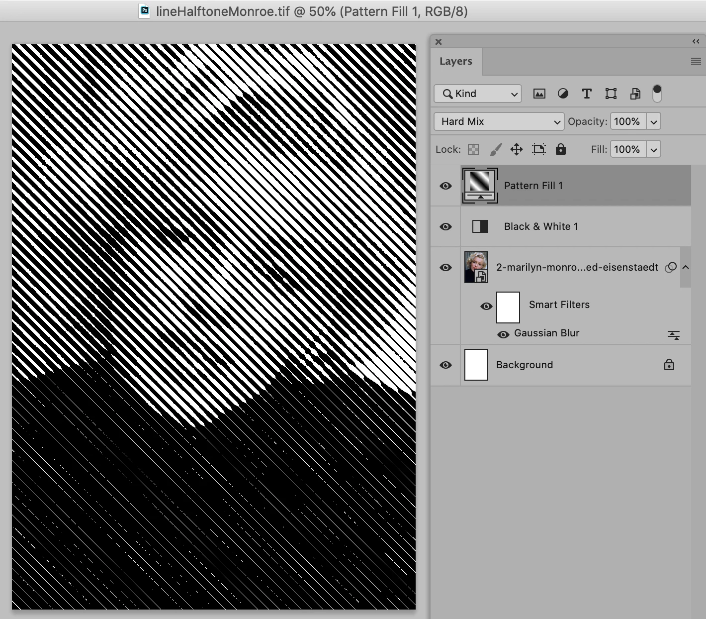 Thank you 🙏  That's what I thought! This vector-thingy is only to check out the result before cutting it from the halftone file from photoshop! Might be a stupid question but where do I find hard mix pattern layers? I'm mostly working in illustrator so I'm not that good in photoshop just yet 😊