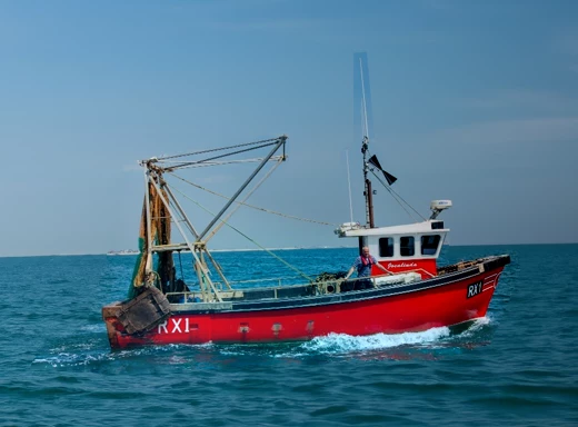 The nearest I have got is to copy the layer, and on the new layer select the boat and use Free Transform to resize. This unselects the Patch tool, so select it again and move it being careful to align the horizon before letting go with the mouse, but the example below is maybe ever so slightly better than the image above.