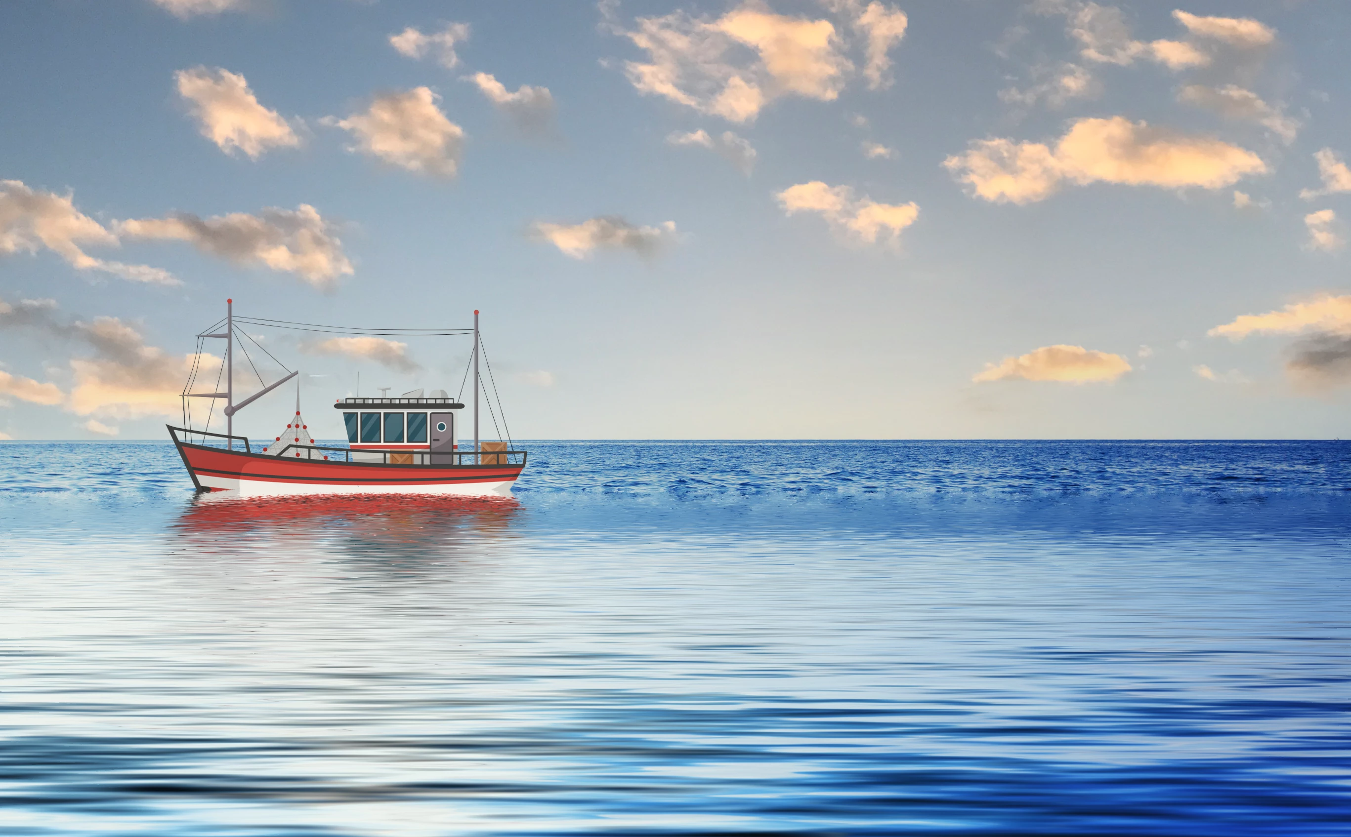 Back around the time of CS6, Martin Evening demonstrated a cool trick with the Patch tool. This was in Destination mode, and what he did was to somehow interupt moving the selection with the Patch tool, and go into Free Transform to resize the patch before committing it and having Photoshop merge the patch into the background. He used a situation very like the image below with a fishing boat (I think it was a trawler so very similar to below.