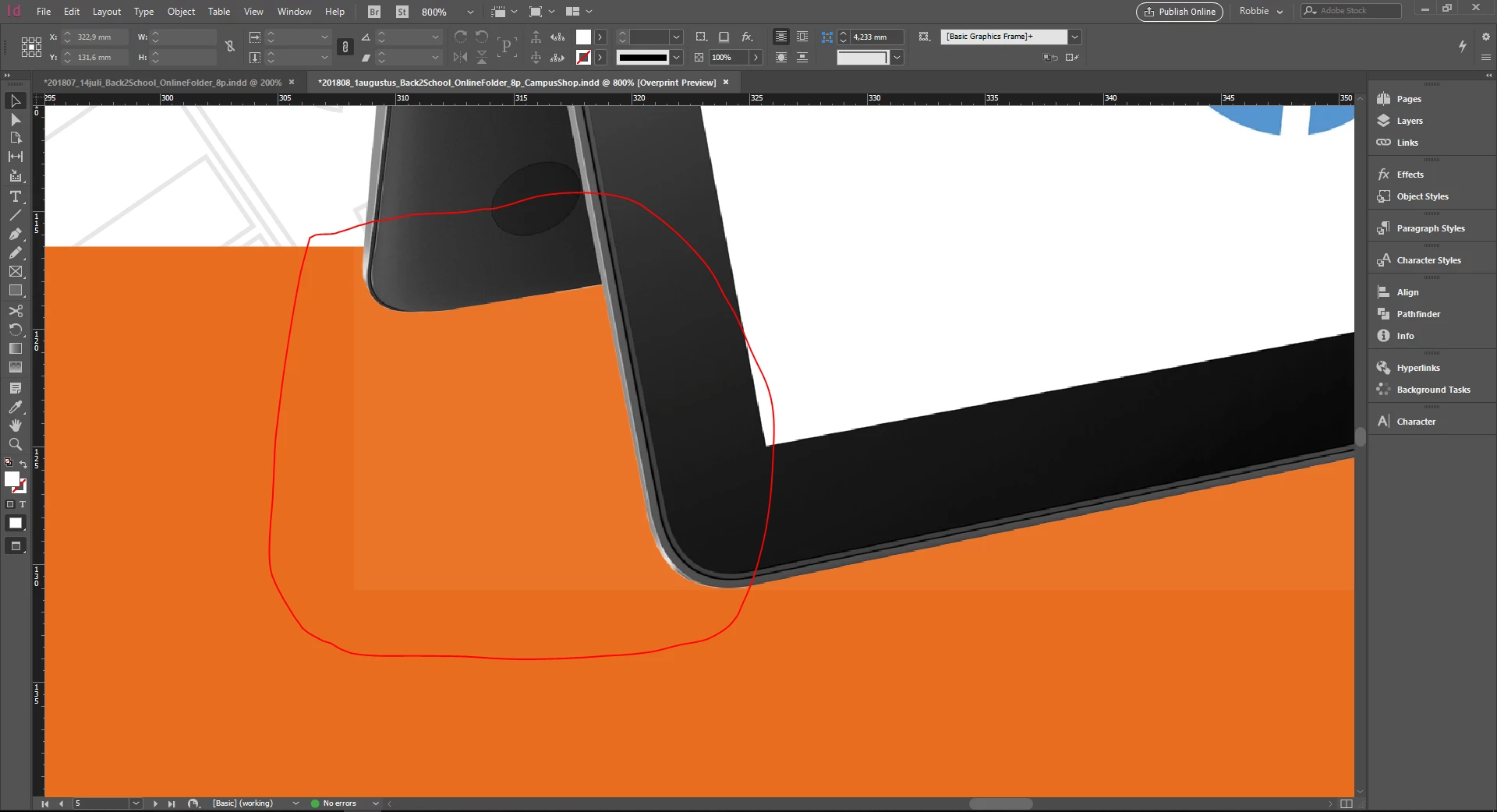 On the second sceenshot you can see the photoshop file in my InDesign file. There you can see that it looks like the brush was like 90% opacity, but in my photoshop it was 100% opacity on the top.