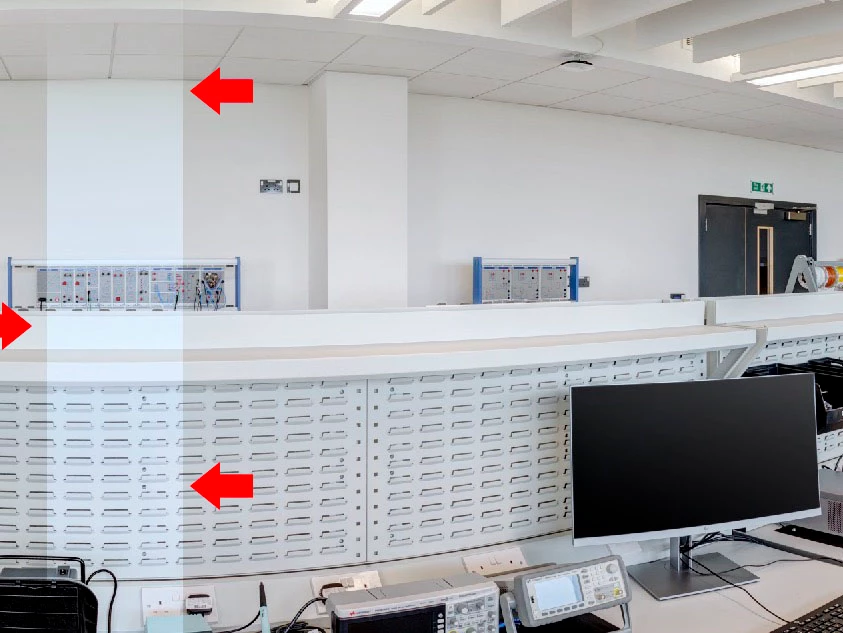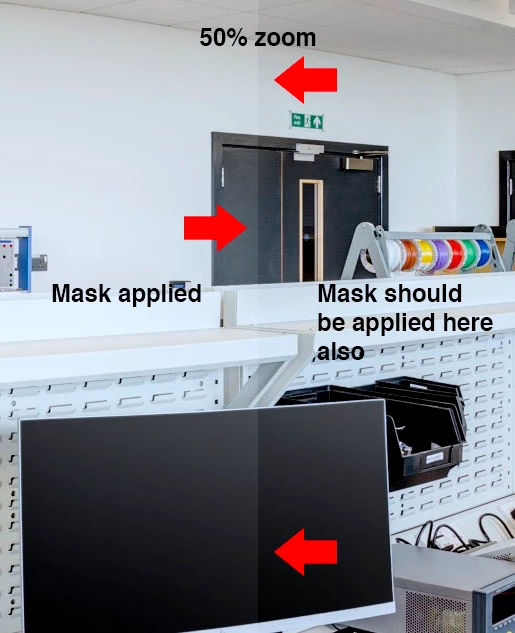 The effect on the image being edited was large areas of the layer were now visible - area shown by red arrows.
