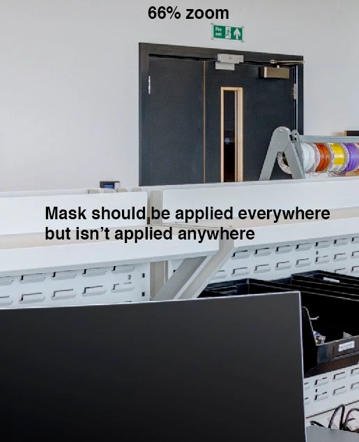 Then whilst working on another layer, the 'blocks' appeared on the mask for the tv layer as below.
