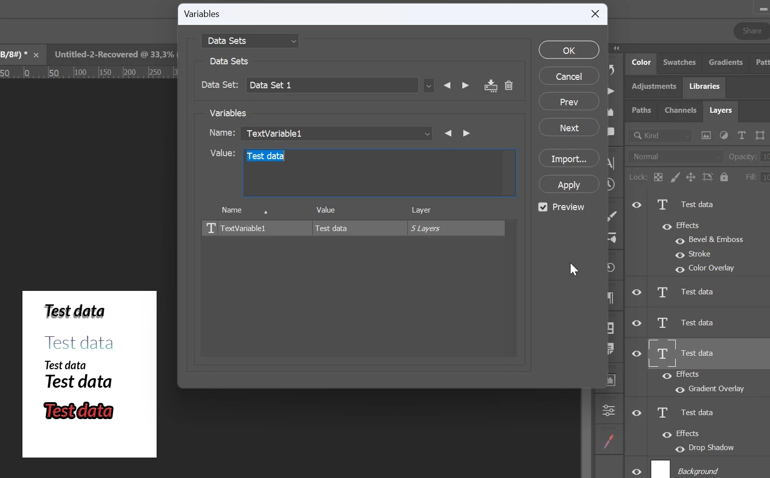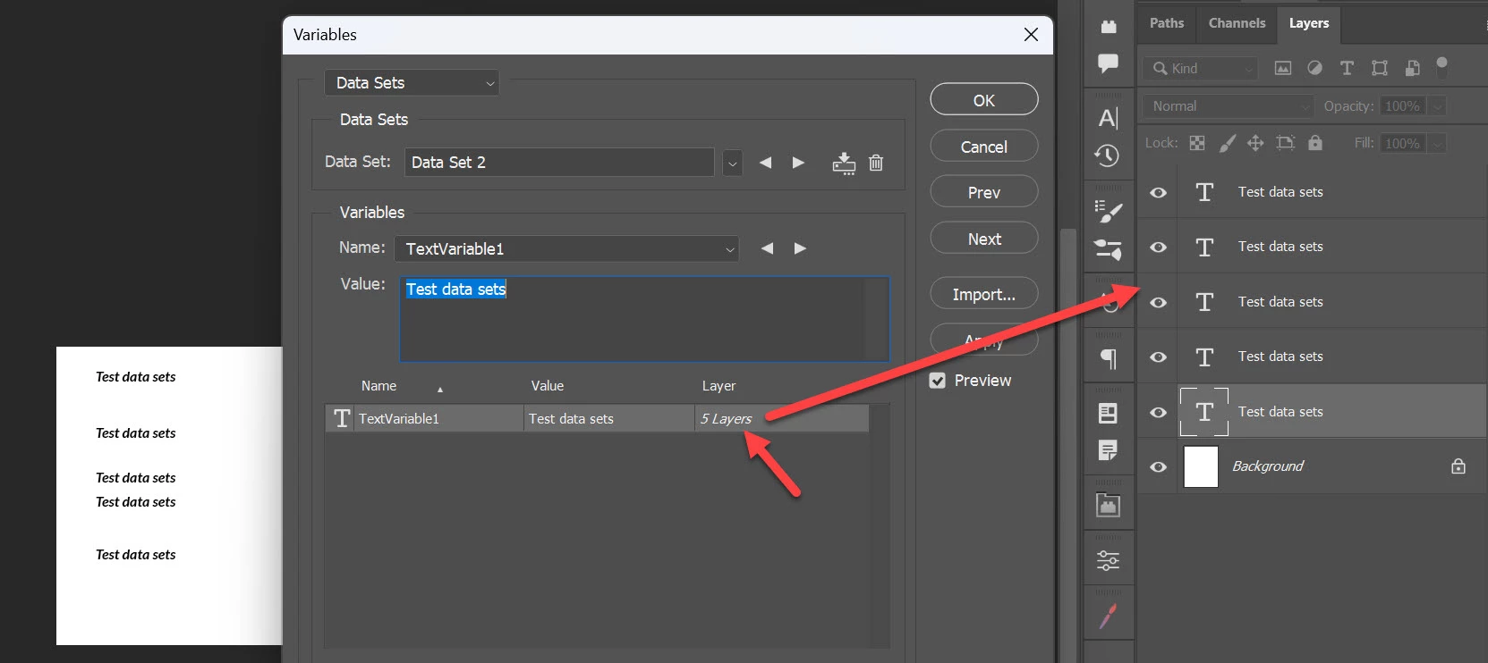 I want to type text in a master file, so that I get the same text 20 times in the another file. Instead of creating a text layer and duplicating it; I want to type the word once in the master, then arrange copies in the destination file. I'd set up the destination copies once, then I can update them by typing in the master file. Basically, an editable pattern. How do I do this?