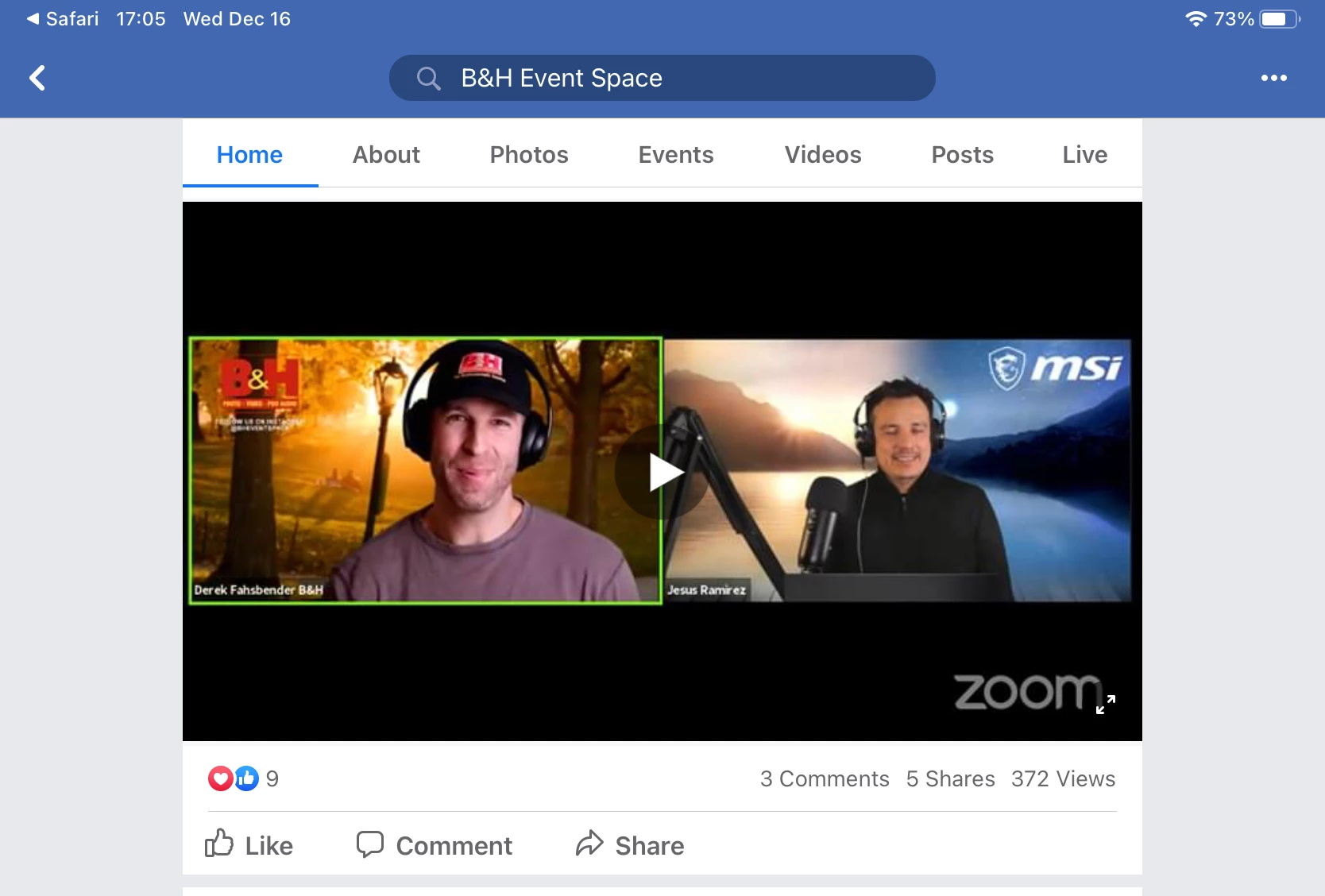 B&H Photo has posted the recording of Jesús on FaceBook at "B&H Event Space". Do a search in FB for the page. Here is a screen shot.