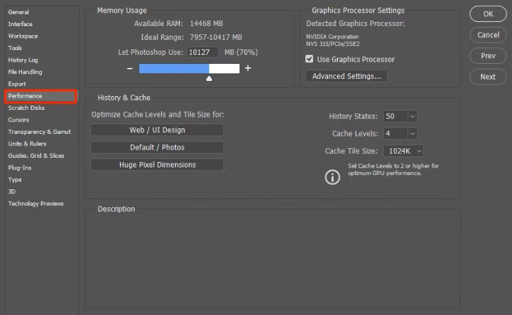 After completing the clean installation, the issue with increasing memory for Photoshop was resolved.