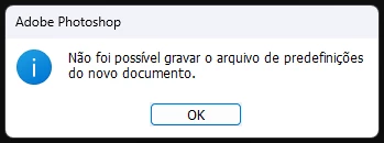 Meu photoshop não salva predefinições de documentos