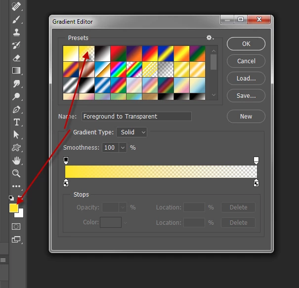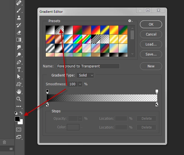 I am missing what would be the second gradient option in the gradtool selection area. Where it's black on top transparent on the bottom. I have tried resetting several times and that one gradient is gone. I look at the list vgradienta and background to transparent is not there. Any ideas