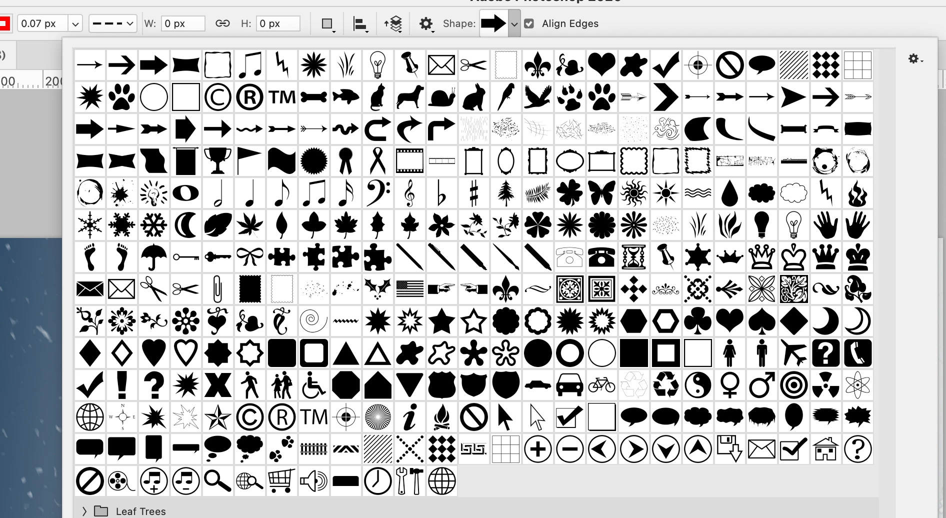 On my Mac, how do I restore my legacy shapes in Photoshop 2020? I'm missing the basics shapes such as arrows, bubbles, etc