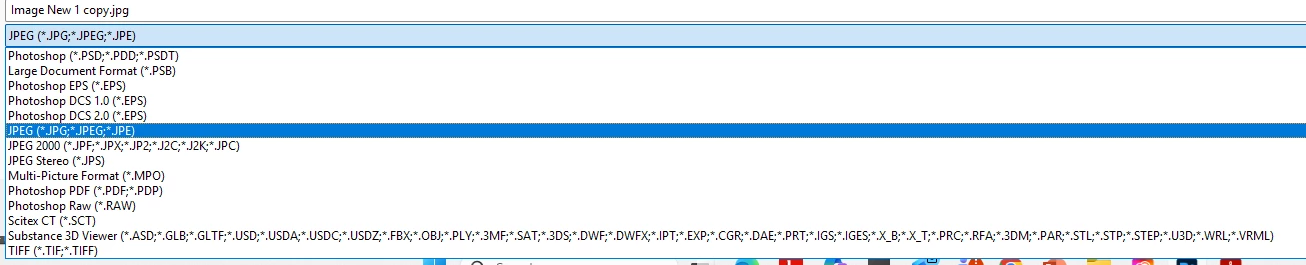 Despite these checks, the PNG format remains unavailable in the “Save As” list. Other formats such as JPEG, TIFF, and PSD continue to appear as expected.