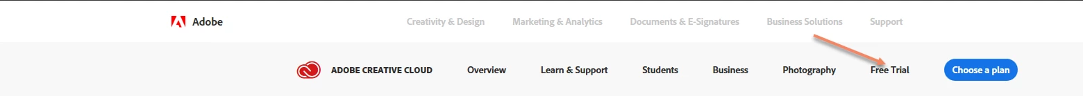 2) You will find you can download trials of many programs but just go to the 'Creative Cloud' option and download it.
