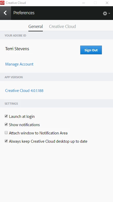 3) This will install the Adobe Desktop app on your computer. It will look like below except the buttons next to the programs will read 'install'
