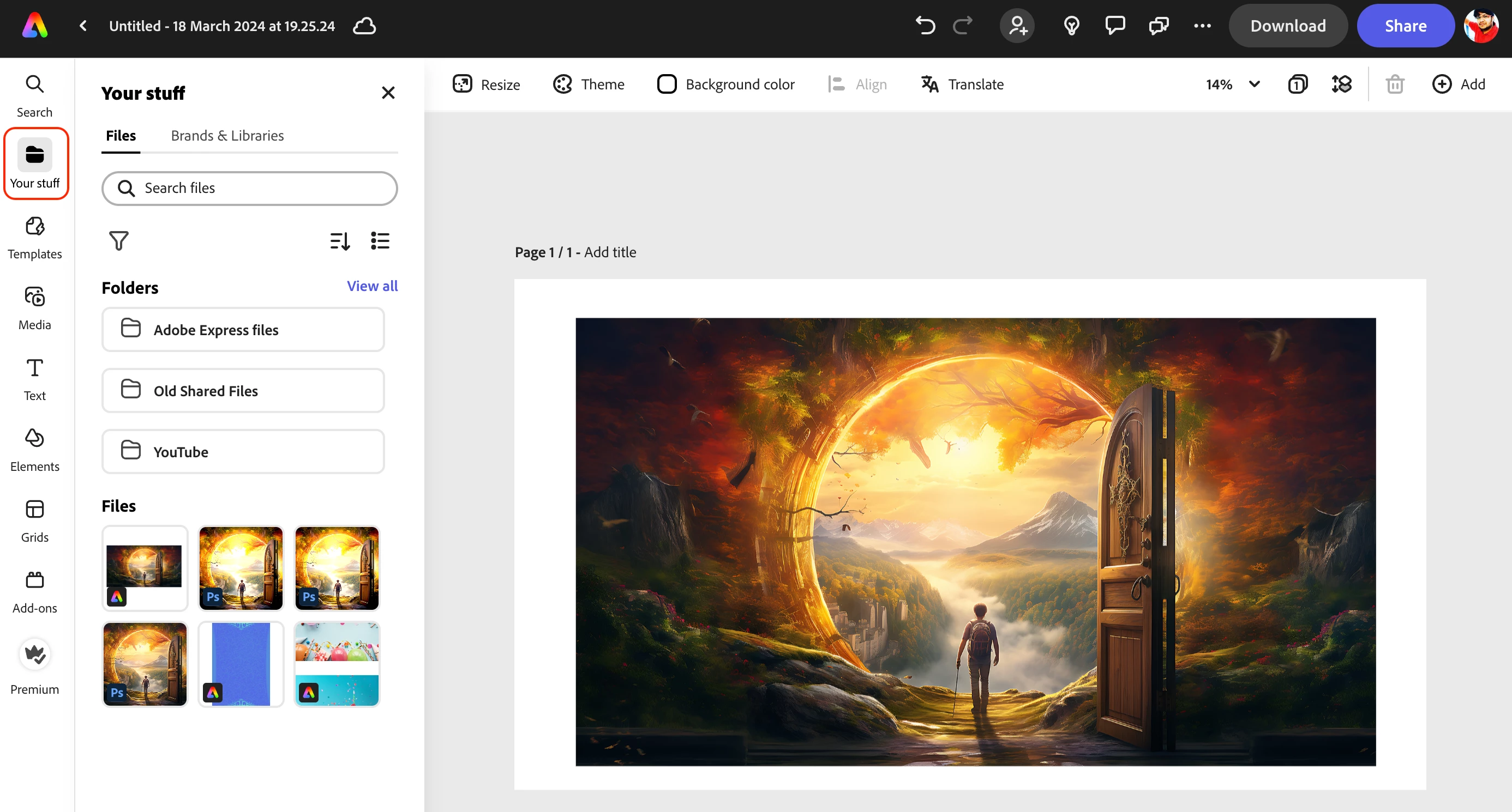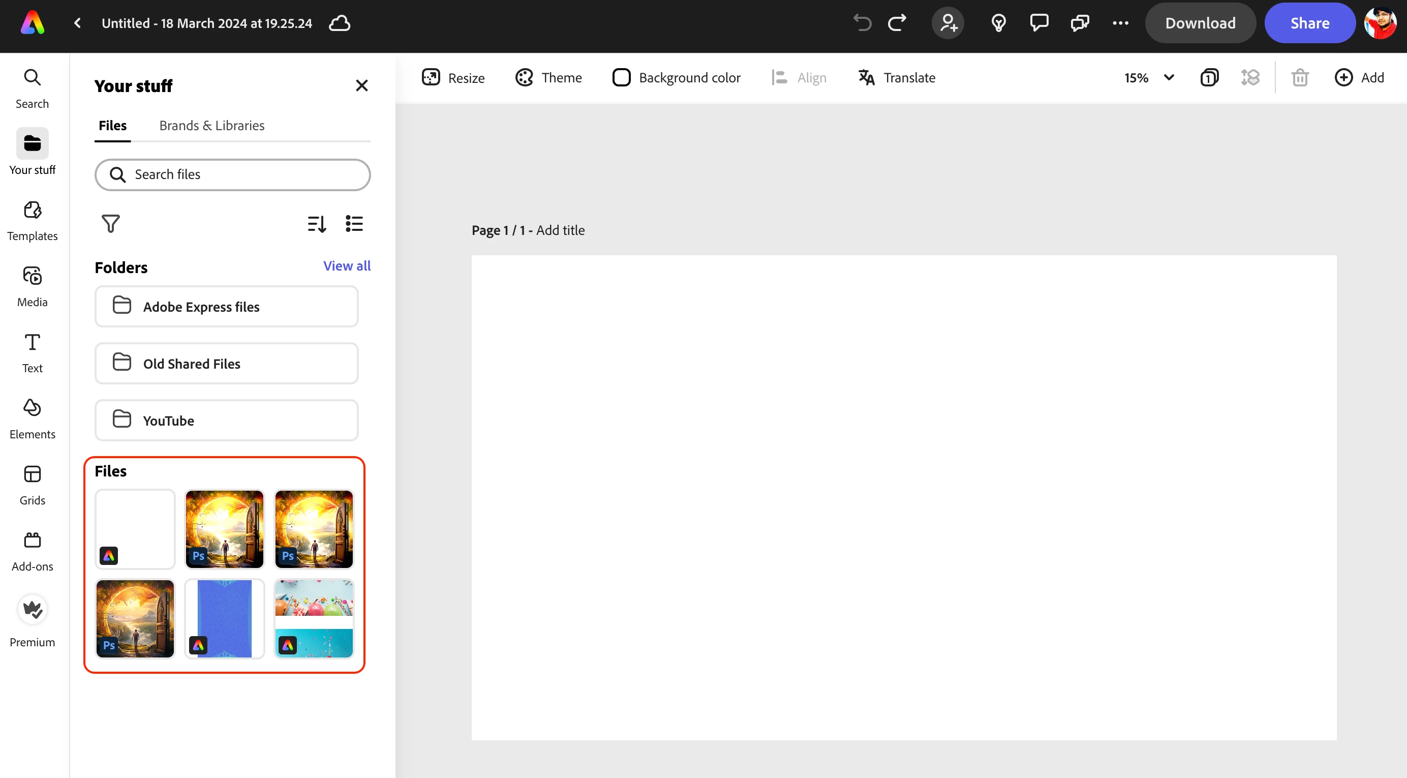 Access Photoshop on the web files from Your stuff in Adobe Express