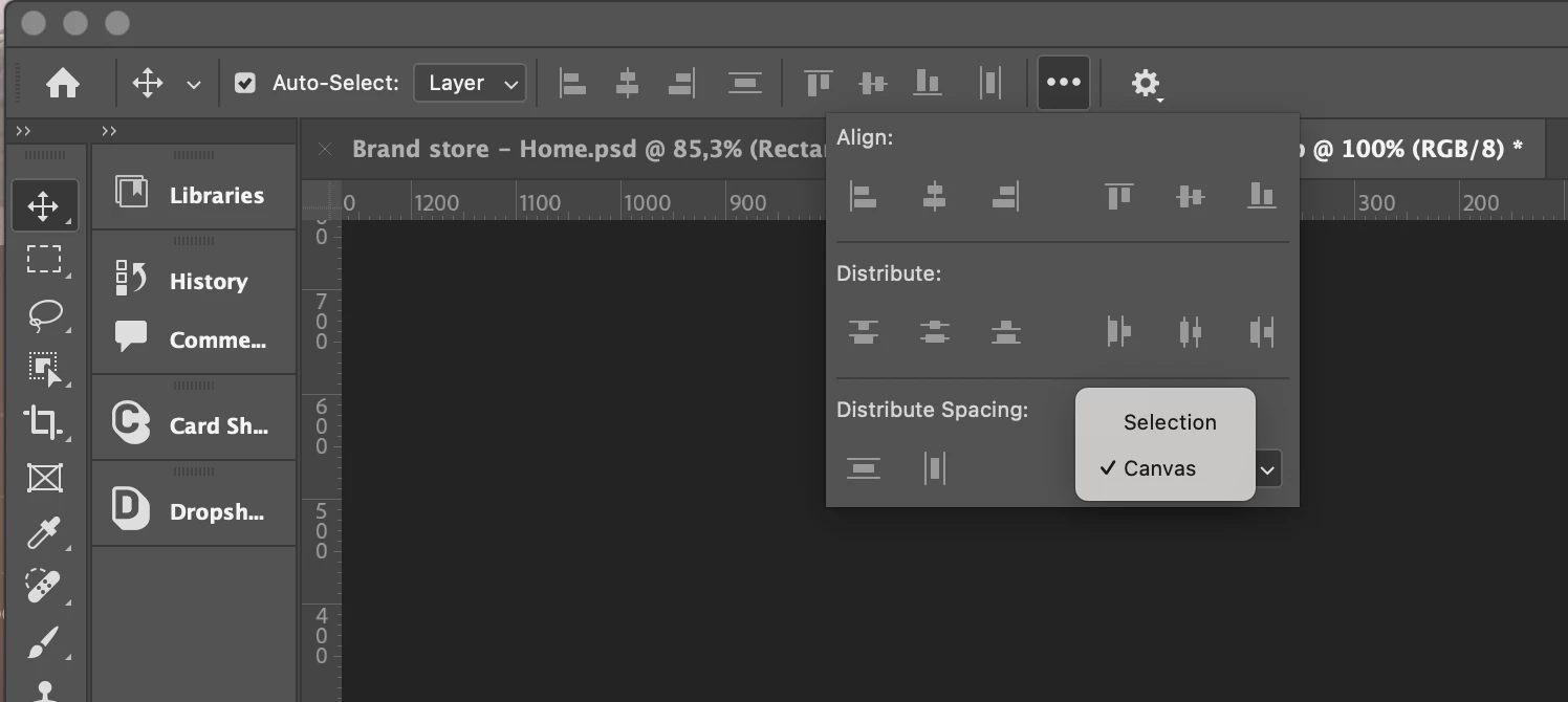 Just a related side note tip, canvas/selection isn't recorded in an alignment action step. The work around is to record a select all before aligning the layer, then a deselect step afterwards. This acts the same as aligning to the canvas.