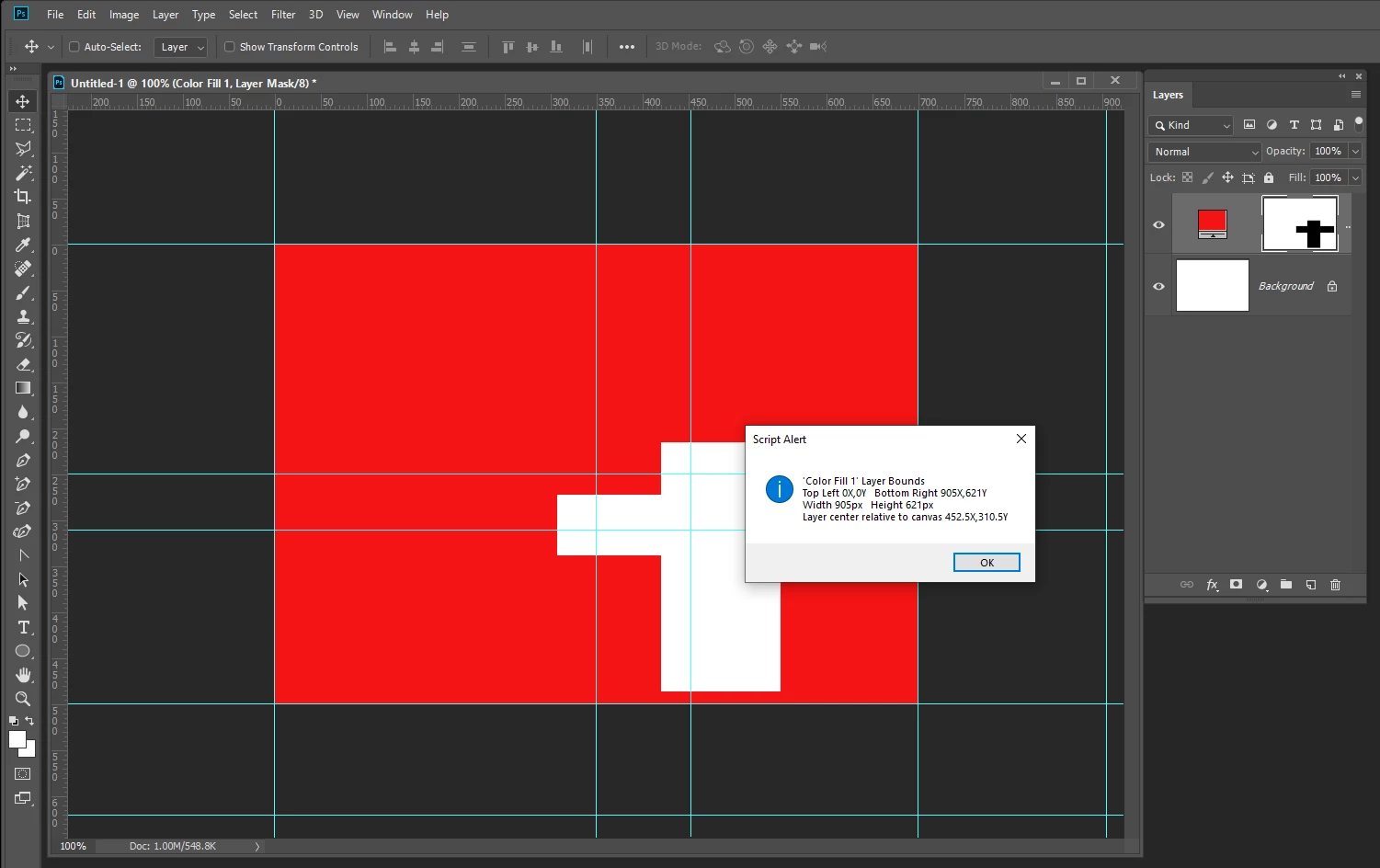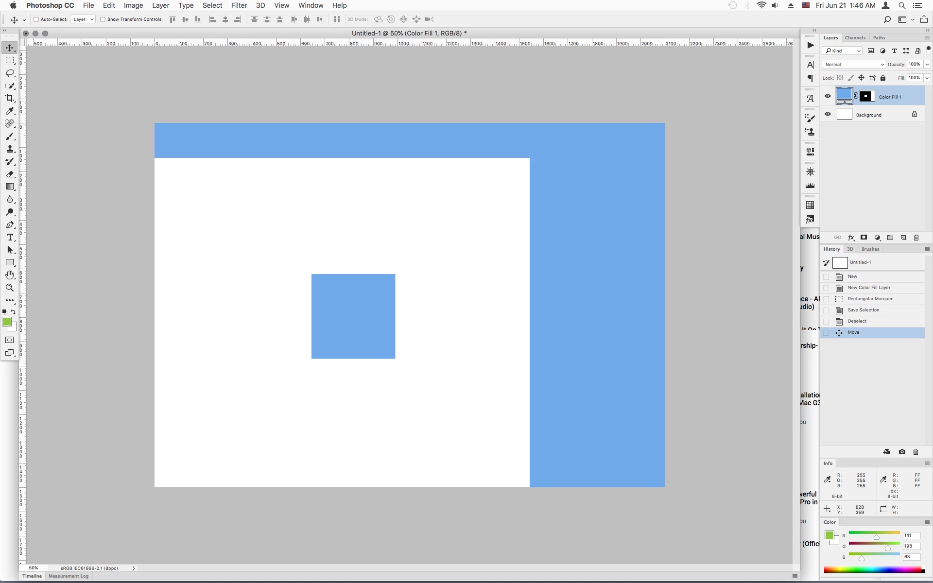 Below is the result if the layer is moved. I would prefer that the entire layer remain white except for the overlapping rectangles in the center.