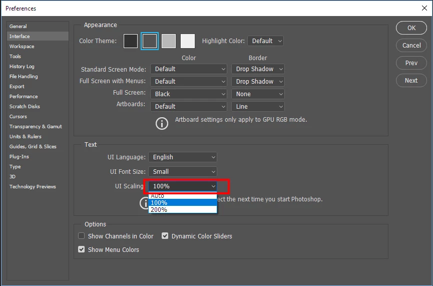 Wow. Sweet setup you have there! I went to my PS prefs on my Mac (they looked just like yours on the PC) but the UI scaling is grayed out. I am not able to change it from auto to 100%. Any ideas how to get around that? Thanks for your time and expertise.