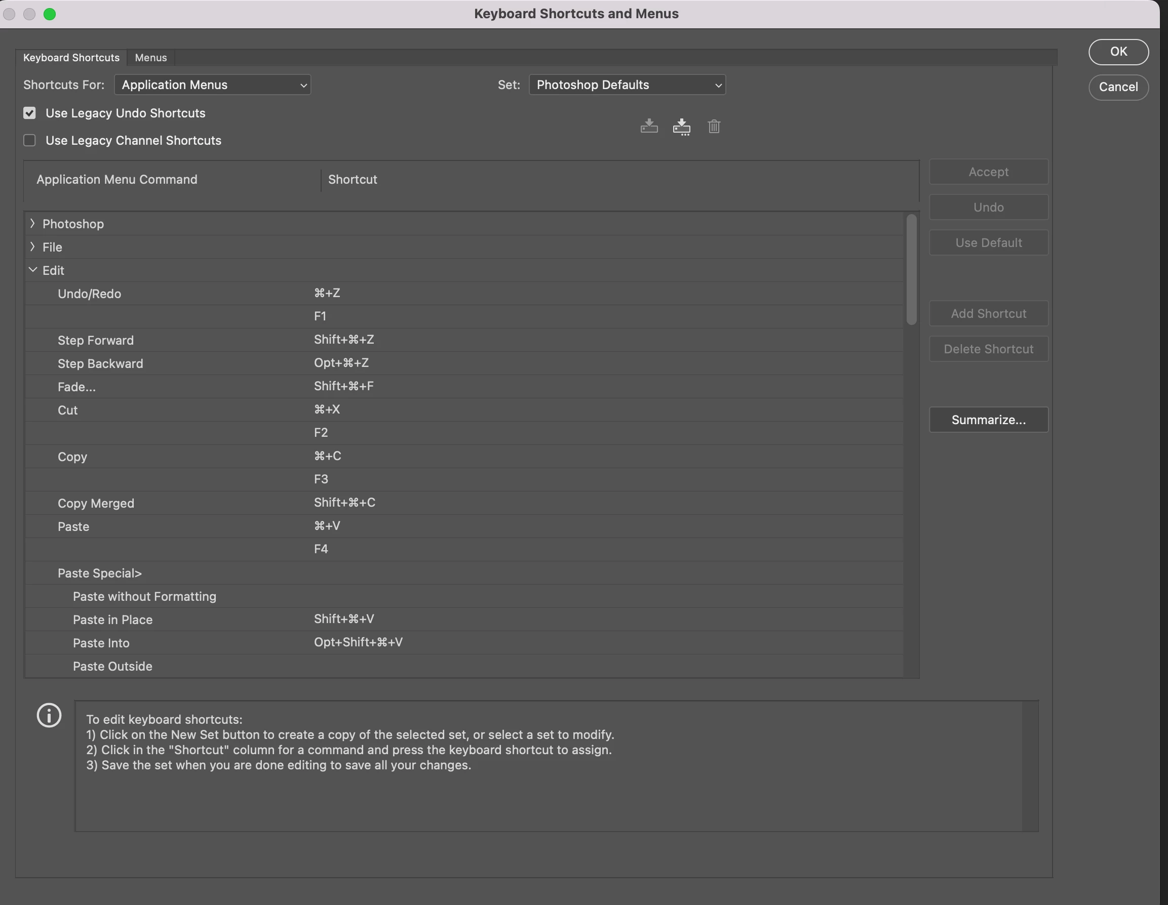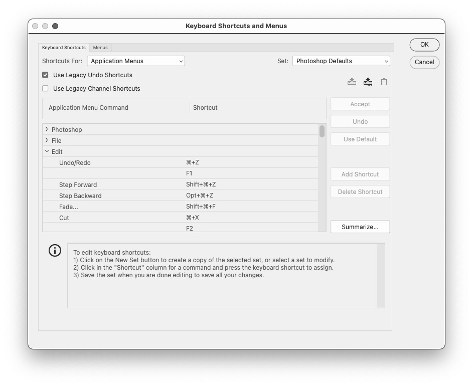• Restored "photoshop defaults" in keyboard short cuts