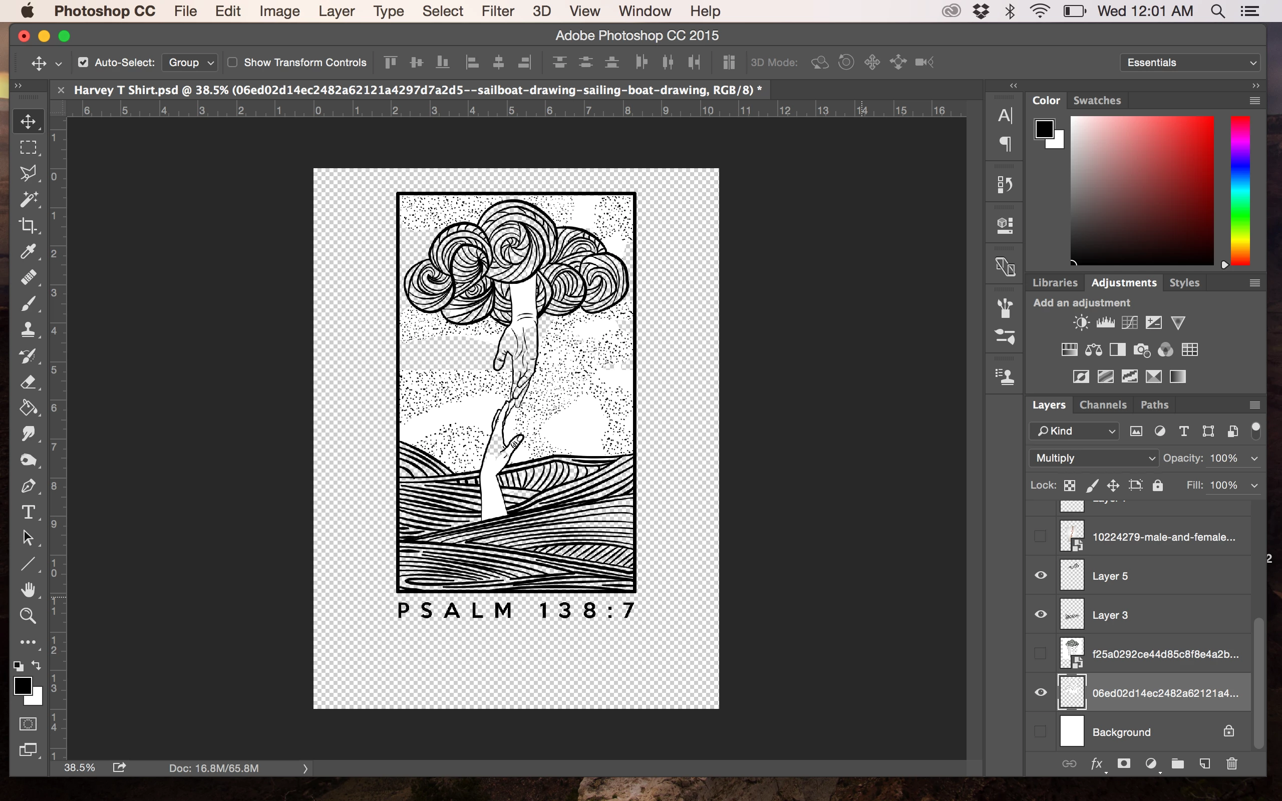 I was close to completing a design which is a black contour drawing in front of a blank background. Some layers were painted with white (the hands) so that the lines wouldn't cross, so my plan was to merge all the layers into one and set the blending mode to multiply. For some reason, it stayed normal with a full white background (keep in mind background layer was turned off). I went back and realized one specific layer (which was used from an image and healing brush was also used) was not changing modes either. All other layers worked. I'm stuck...