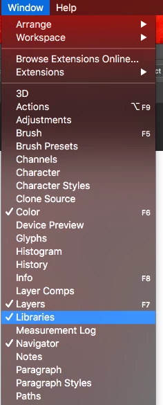 I understand that I should have a window for Libraries whereby I can store various Adobe stock images or my own images. I searched other posts where people get error messages about not being able to connect to libraries; however, in my case, they simply do not appear, no error messages involved.