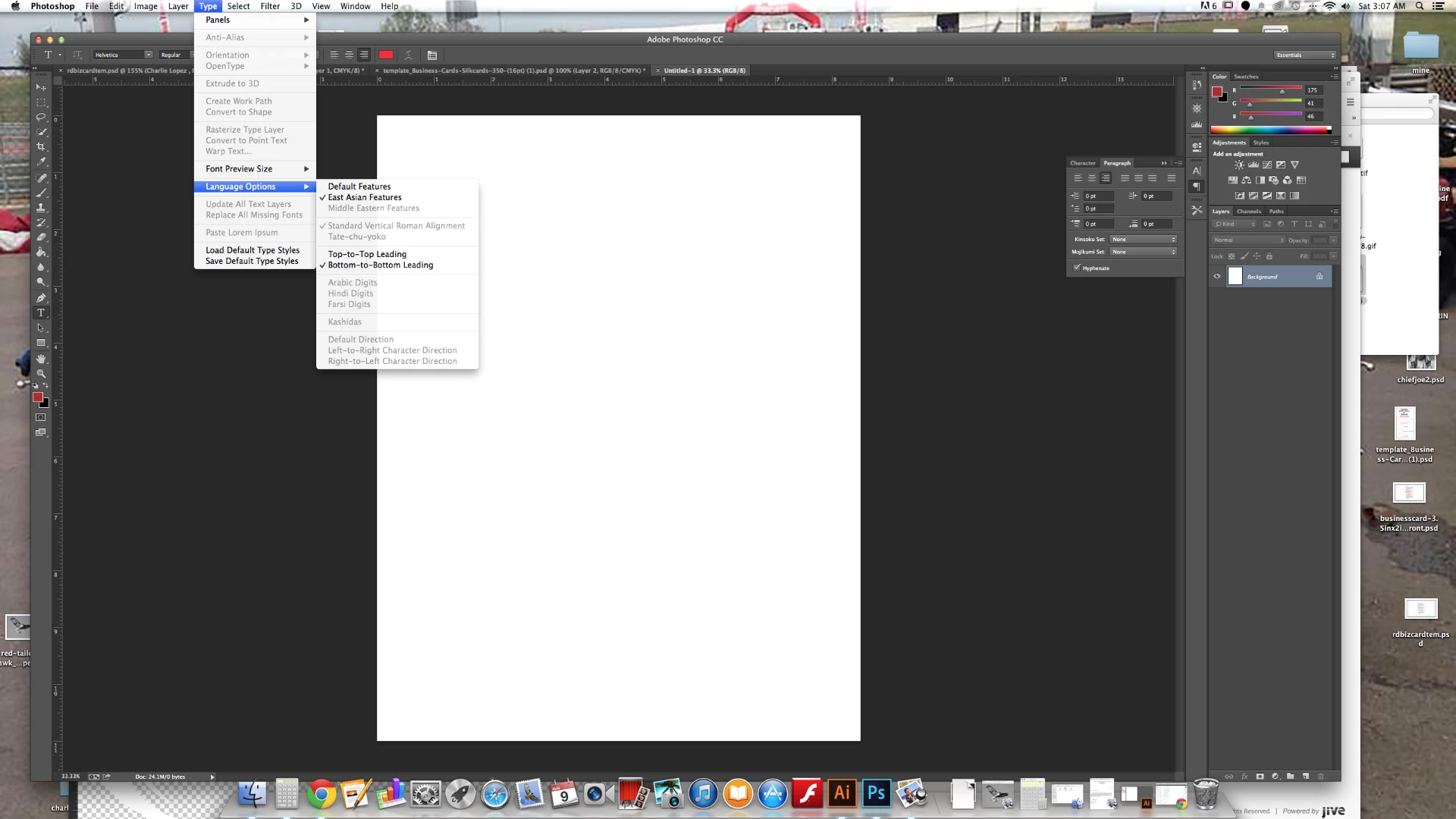 3. [top menu] Type / Language Options / select Middle Eastern Features
