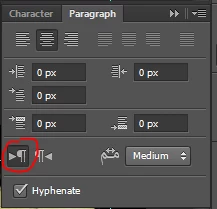 4. [top menu] Window / Paragraph / select as it is on picture below...