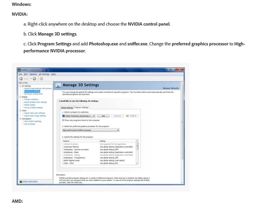 Hi there i have a problem with preferences because my photoshop cannot find my GPU nvidia 1050, i already solve it with support when he put in Nvidia preferences 1050 as set for photoshop. But after one day is back and back again. I tryed reinstal photoshop, all drivers new, last update of photoshop and now, i just dont know what else can i do