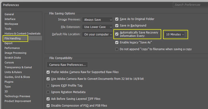 I was working on a large Photoshop file for more than a day, and while I was working, the electricity went out. When the electricity came back, I opened the file and did not find the layers I was working on. What I found was a destroyed image.