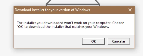 When i click "ok", it redirects me to the exact same download page and the same error happens again