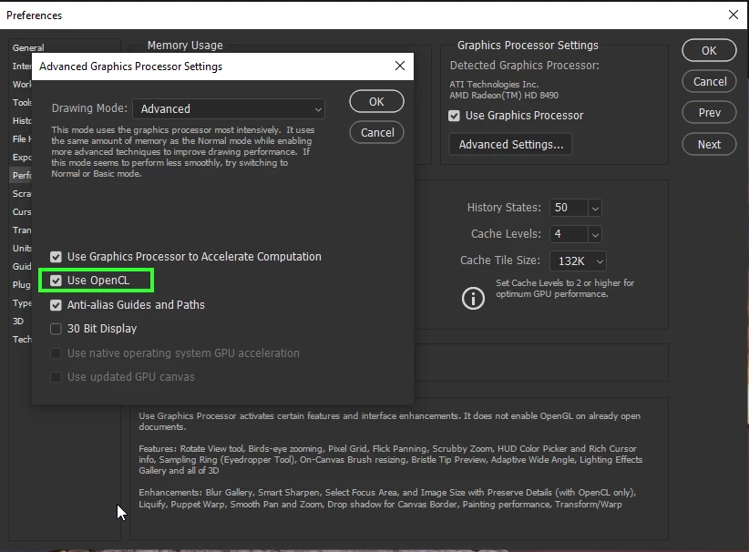Estou tentando rotacionar a prancheta do Photoshop 2020, e me deparei com o seguinte erro: Não foi possível completar o seu pedido porque ele só funciona com janelas de documentos com OpenGL ativado. Como resolvo?