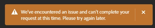 I’ve been experiencing an issue with the Generative Fill tool in Photoshop since Wednesday. When I type something into the Generative Fill tool and press Enter, it starts working but then stops, and an error message appears.