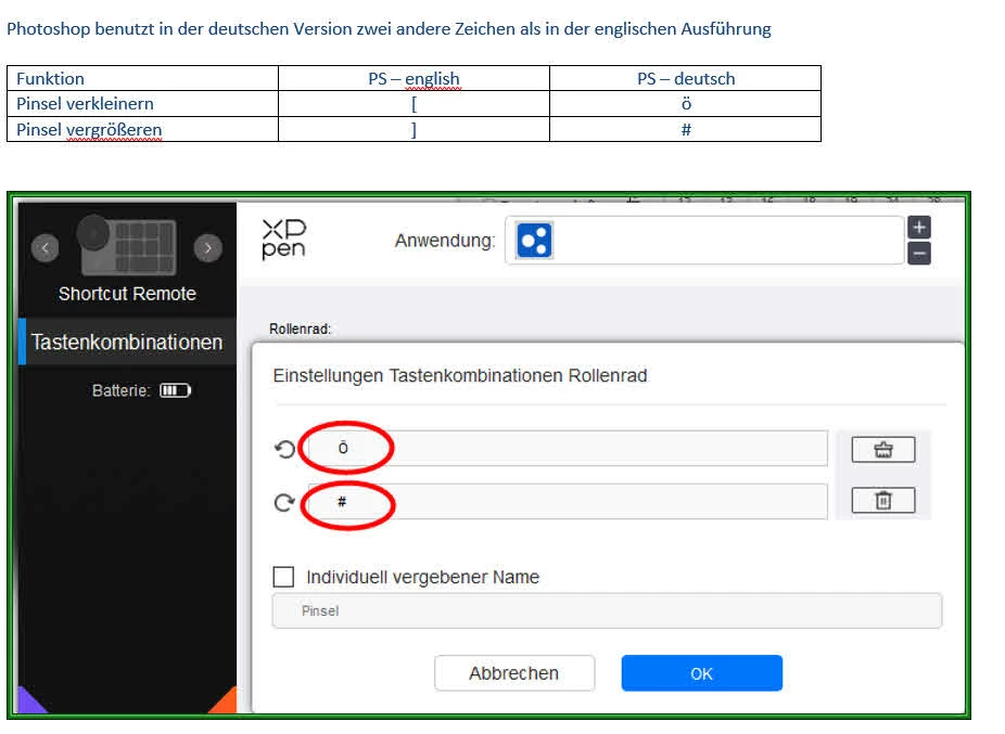 in photoshop i can't adjust the brush size with the tablet's wheel actually i can just make it smaller, but i have no such problem in a different drawing app i use. tablet brand xp pen deco pro m