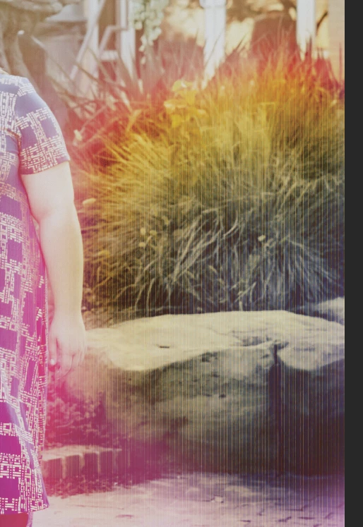 fcontrast. The blue layer has much greater loss of contrast, and this extends into the woman's arm and dress, as well as further down into the brick pavers.The red channel has gotten inverted, and the problem continues even further towards the bottom than the blue channel.