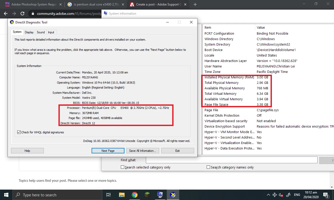 Need support for Installing Adobe Photoshop and System Requirements. Low-End PC