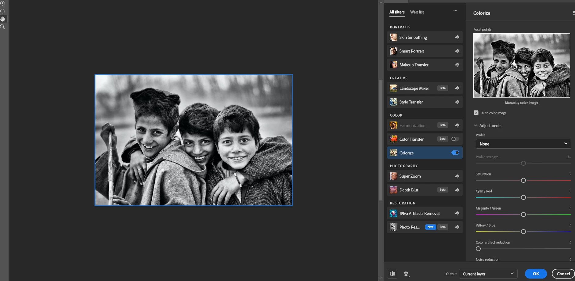 I have tried the colorize filter on 5 different black and white images. When the "processing" completes, nothing changes with the image. Not a single color anywhere.