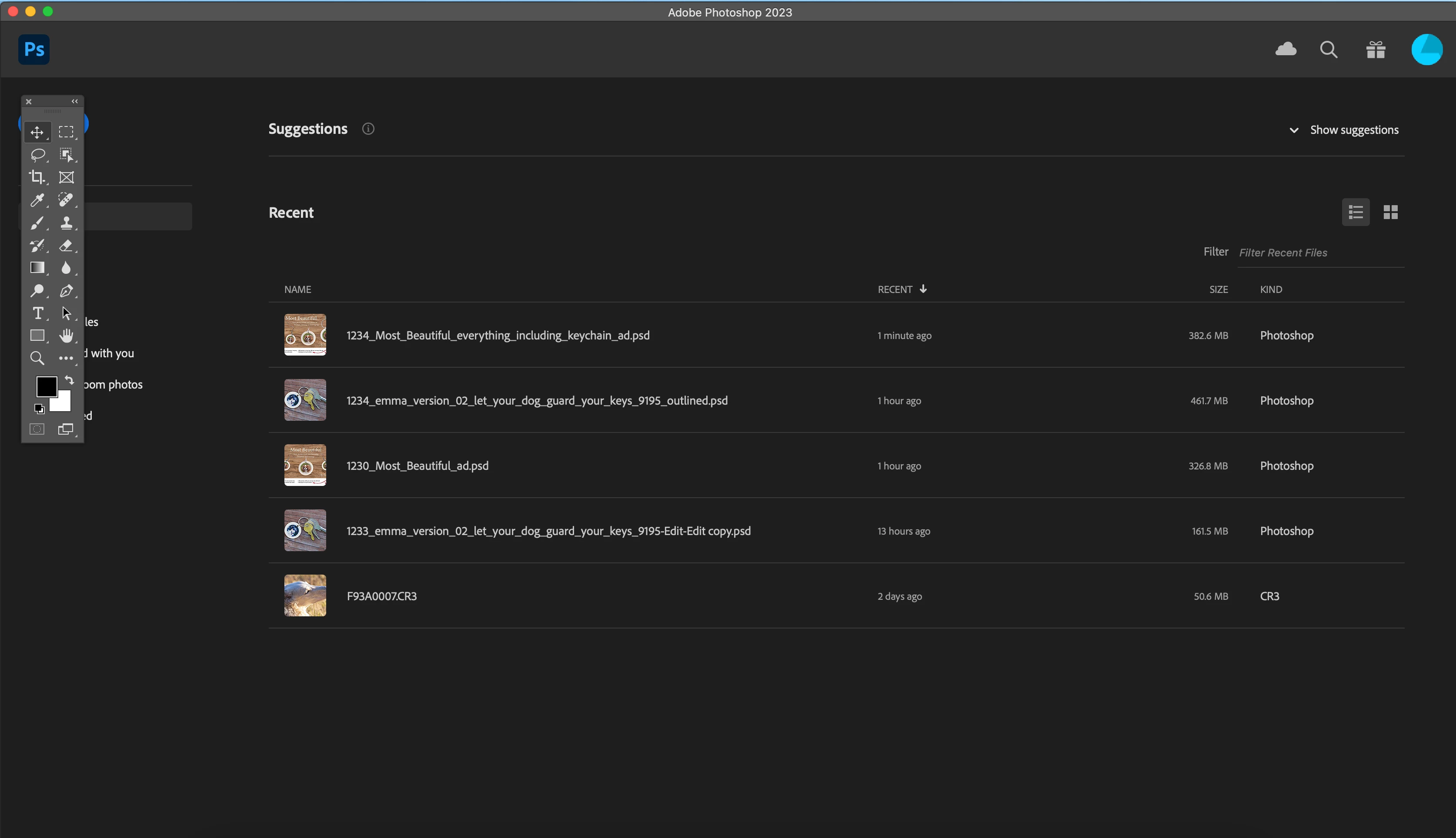 For some reason my Photoshop became uninstalled and upon re-installing I'm having to scramble to put all customizations back into place... but this, is a mystery, I'm sure is designed to be a help screen for newcomers, but I want it out of the way for my work how do I get rid of this screen so I can just get back to work without the annoyance of 'suggestions' and 'recent'.