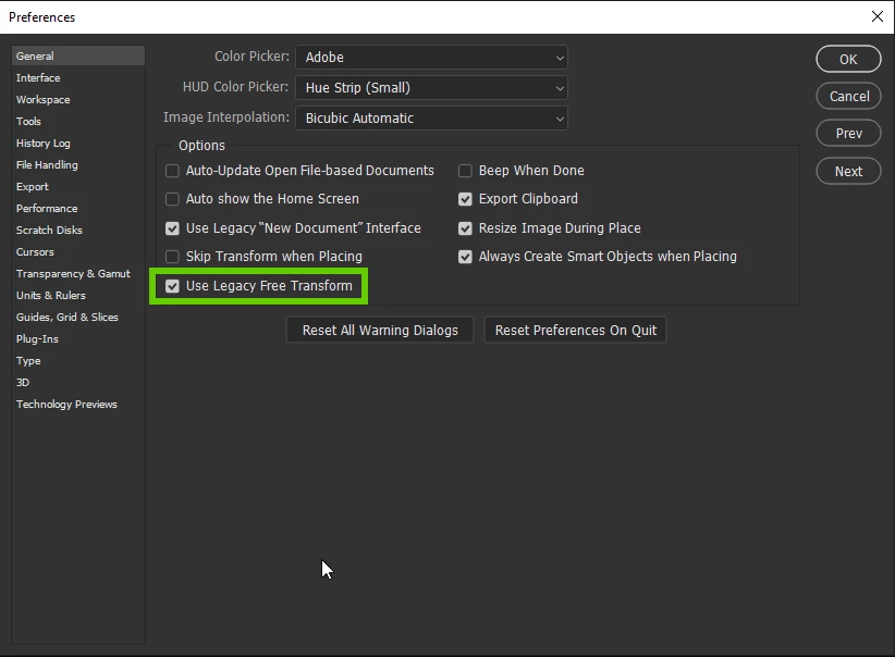 Hi is there anyway to invert to the old transform tool. The new ones is just anyone to the point I'm just frustrated. I've been using photoshop for the past 16 years and this is absolutely the worst change ever made. I don;t even have a pivot point in the trasnform tool anymore. The shortcuts and resizing shortcuts are inverse is just like AAAAAAAHHHHHH! why?!
