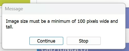 "photoshop scripts image size must be a minimum of 100 pixels wide and tall error"