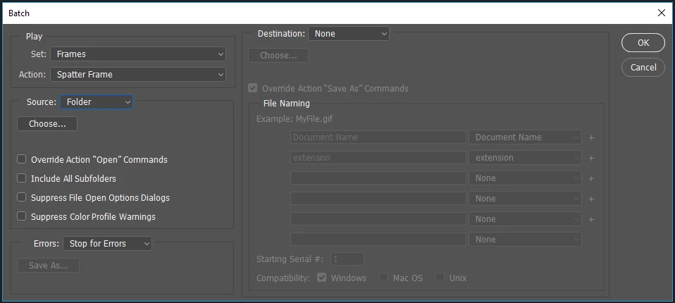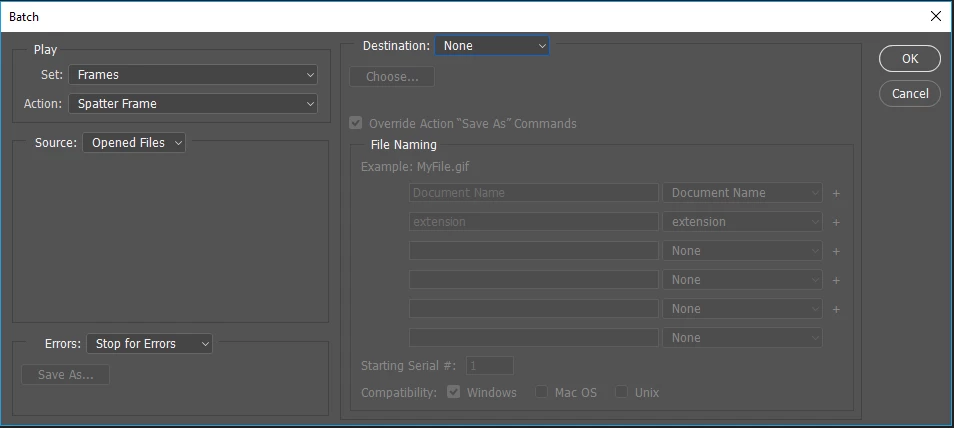 when i batch it, with my template psd file and jpegs opened, it gets the jpegs, cut them, and paste them in to the template as layers.