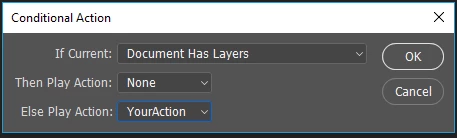A single conditional step that plays your action. Does nothing for your layered PSD for the othes  none layered  docyments your action is played.   select, copy, close, paste.