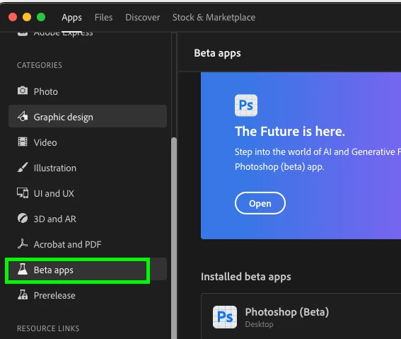 Quiero instalar Photoshop Beta pero no me aparece la pestaña de los programas beta