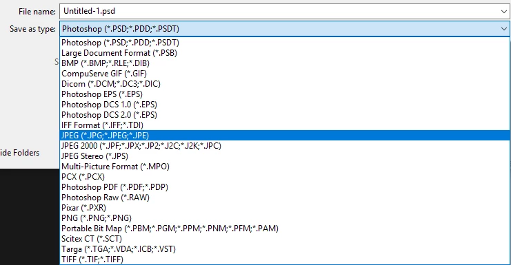 My PC runs Windows 10 Pro. Photoshop CC has recently upgraded to version 19.1.4 and since then the option to save a .tiff file to .jpeg has disappeared in "save as". I would have attached a screen snip showing that the .jpeg option is no longer shown in the drop down but PS now prevents its use in PS.
