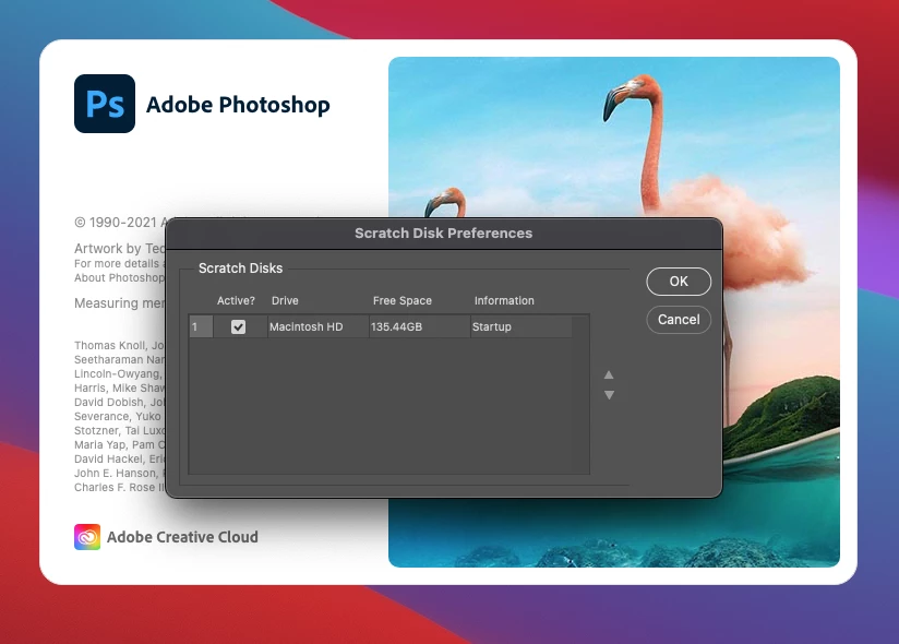 On my Mac, I'm holding Command + Option while launching the app in order to add another scratch disk. But I don't see any option to add another scratch disk. I've tried right-clicking, restarting, retrying, unplugging and plugging back in. Below is an image of what it looks like for my scratch disk options upon launching Photoshop.