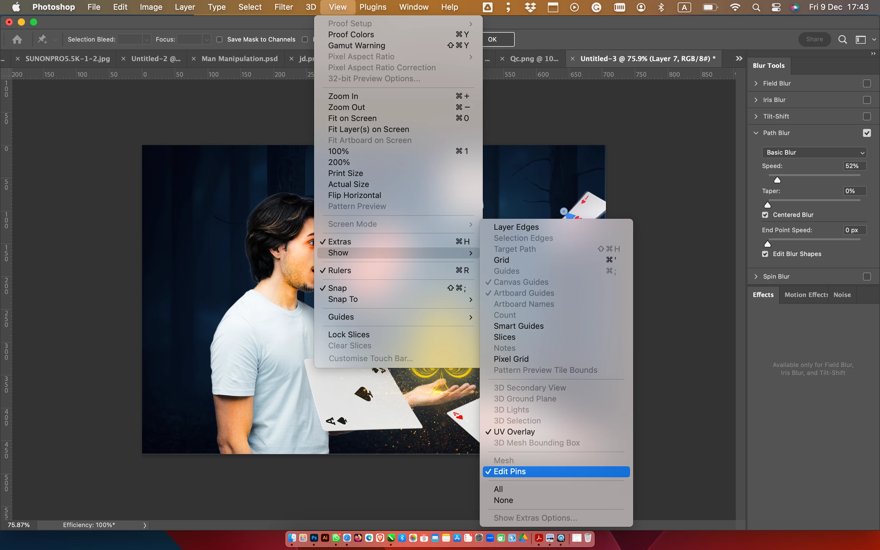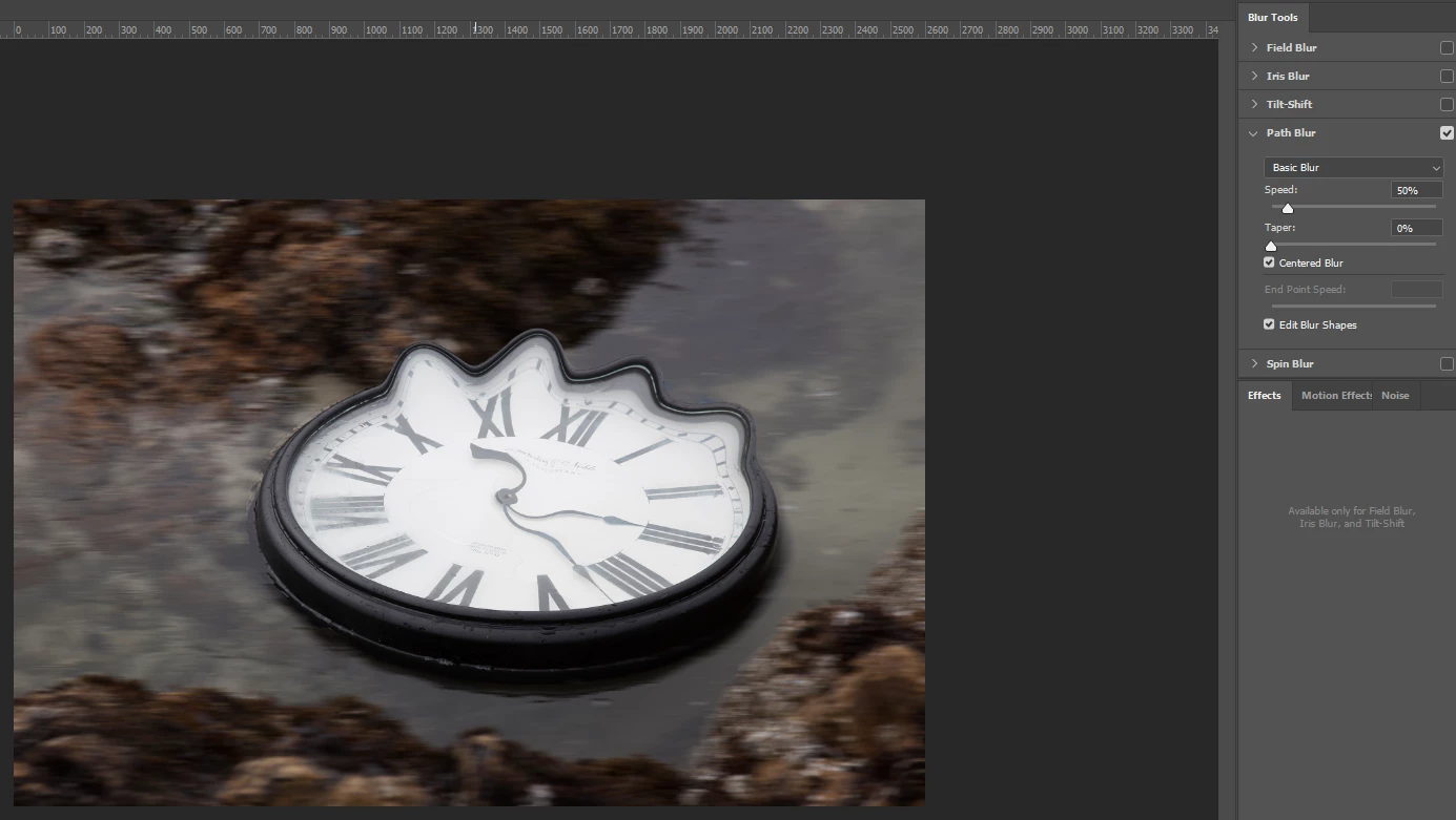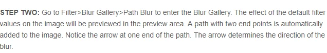 New to Photoshop. I am following a tutorial where it says to use Path Blur, and it says a path will automatically come up. However, no path is coming up and when I click to drop the pin, the image blurs but there is no path coming up. I am attaching a screenshot of the tutorial I am following, a guide I found that says the path should come up automatically as well as my own screen. Can anyone help me?