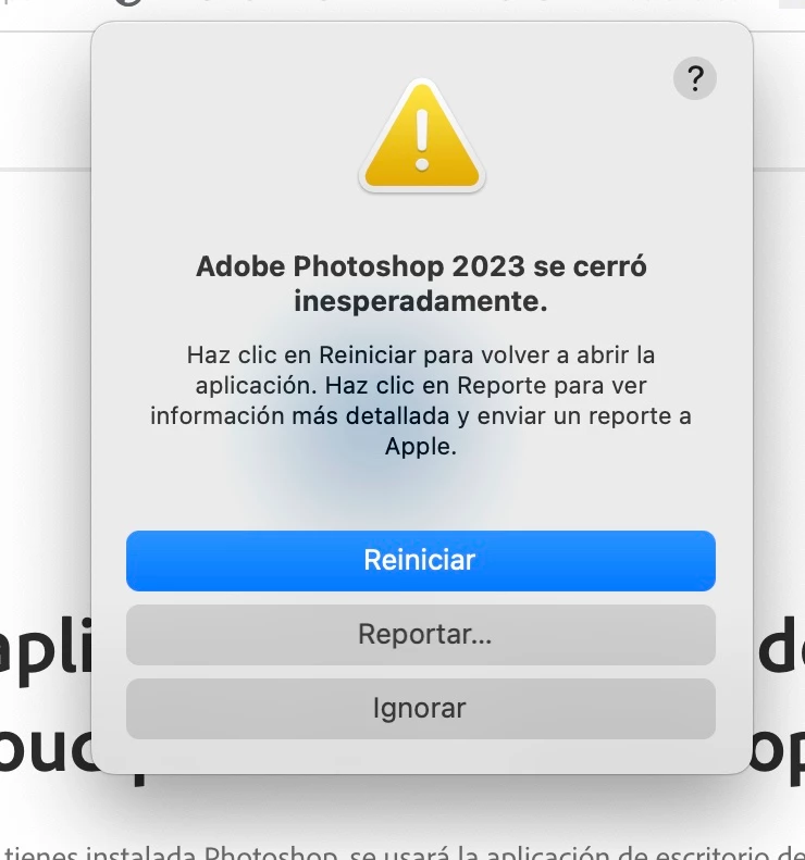 Hola Comunidad, tengo macbook pro 2016 OS Monterey estaba trabajando bien , hasta que volvi a instalar la version abode photoshop y no abre, se cae cada vez que la abro, ya la desintale e intale muchas veces y distintas versiones