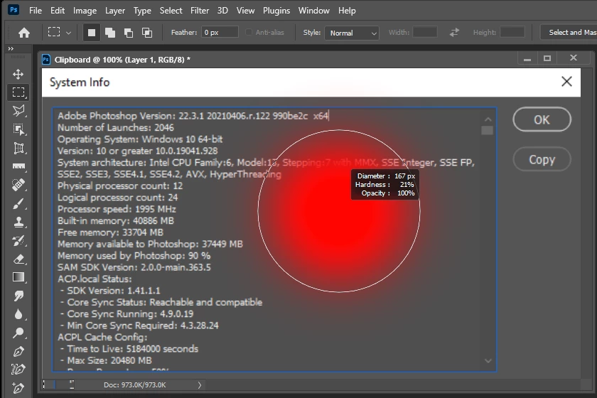 No red brush preview after 22.3.1 update