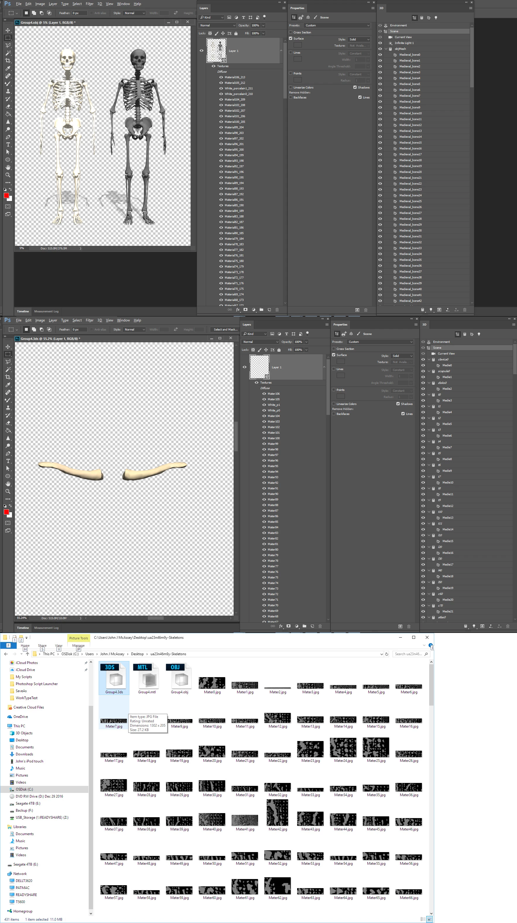 Most free models aren't properly rigged, and even if they were, such files are almost impossible to keep app-agnostic. And certainly not in Photoshop: Photoshop is rather severely limited for this type of work - and most certainly in regards to 3d rendering quality and speed (which is decades behind what is available for free in Blender).