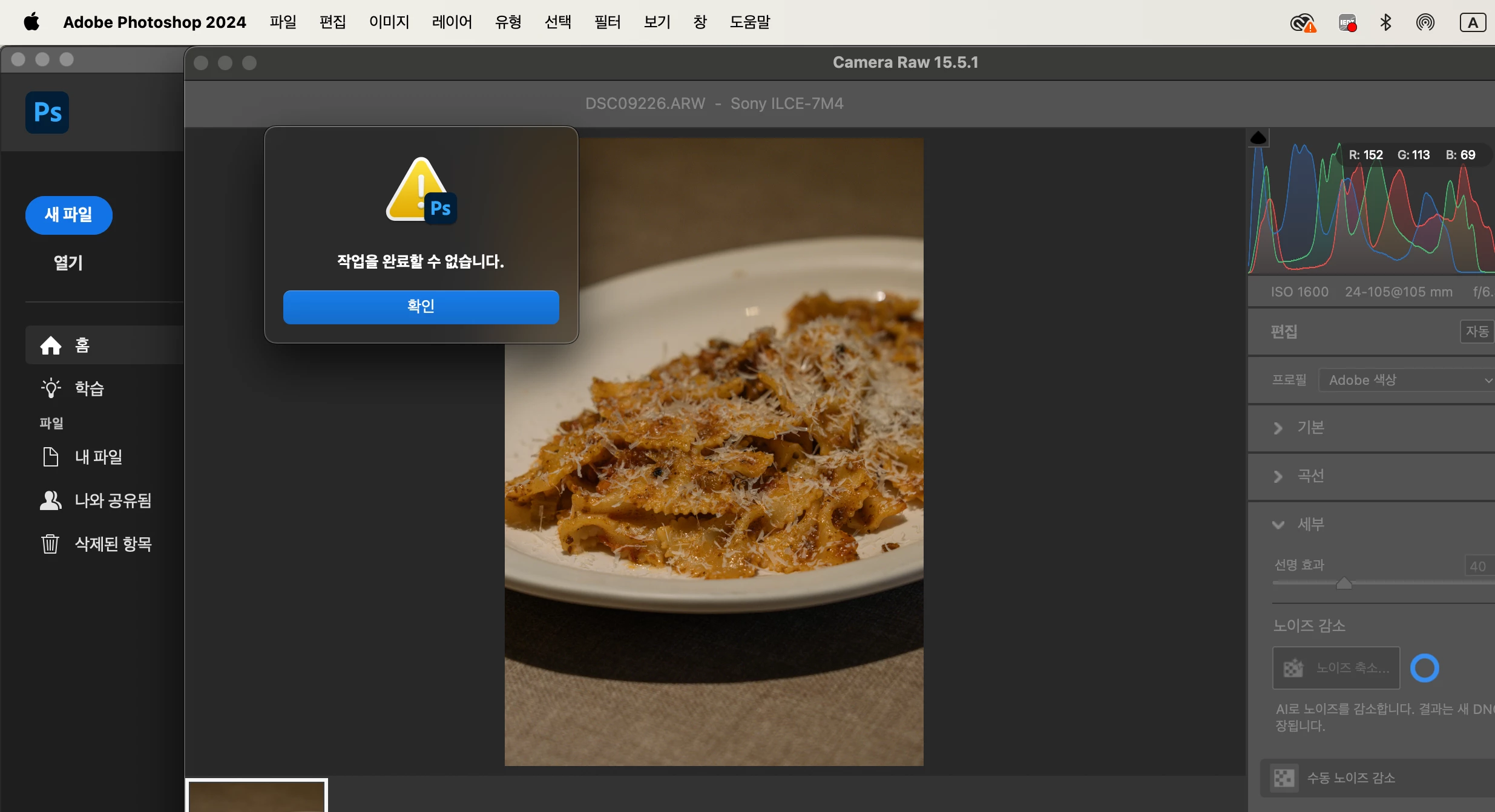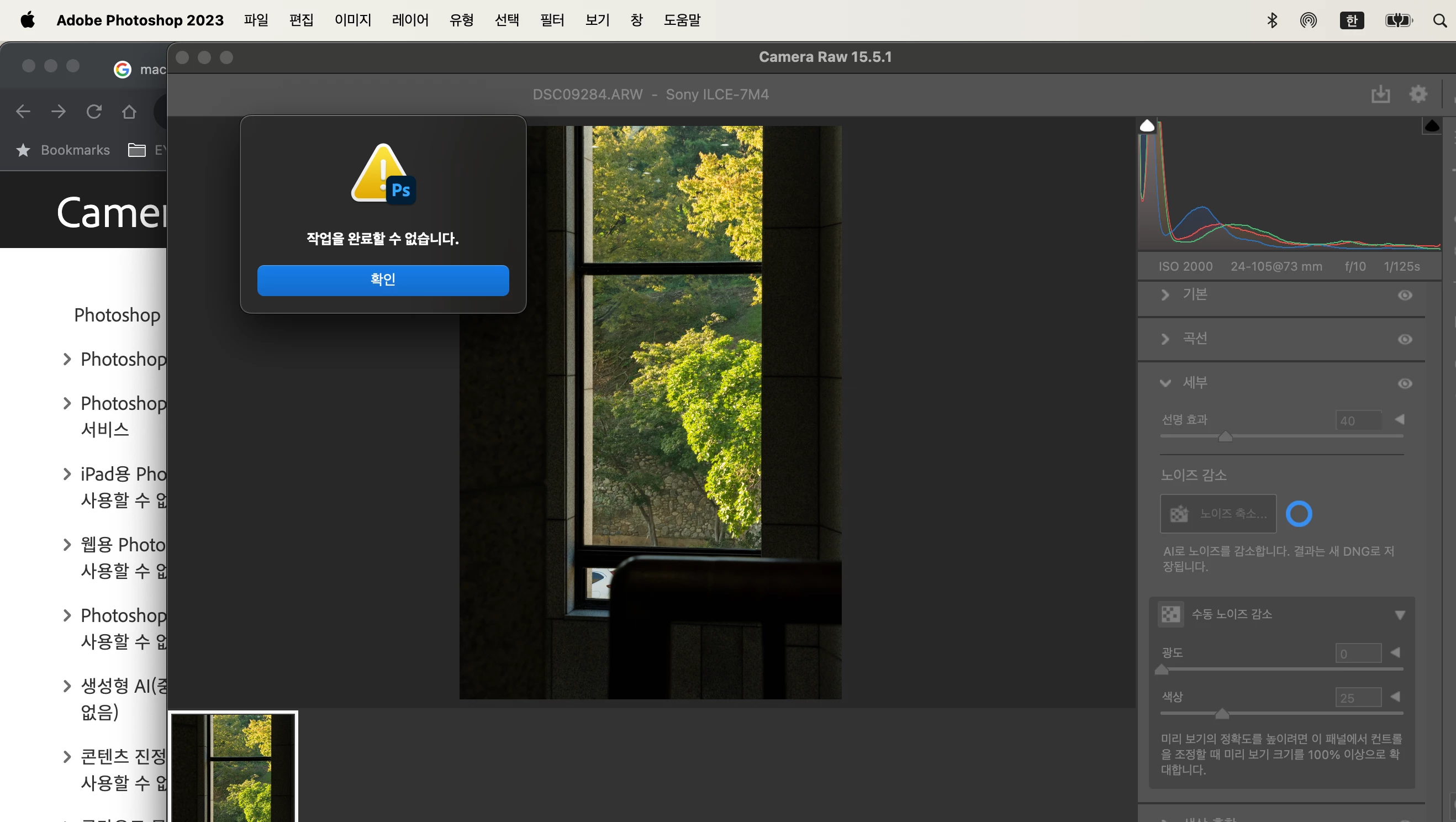 MAC OS SONOMA로 업데이트한 후 노이즈 감소(AI)가 작동하지 않습니다.