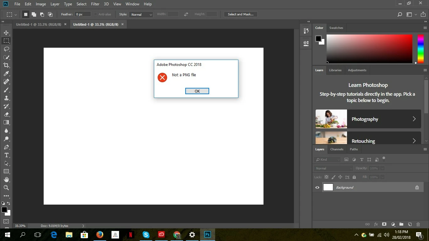1. I have tried opening this same file on my other laptop which also has Photoshop cc 2018 installed and it opens perfectly.
