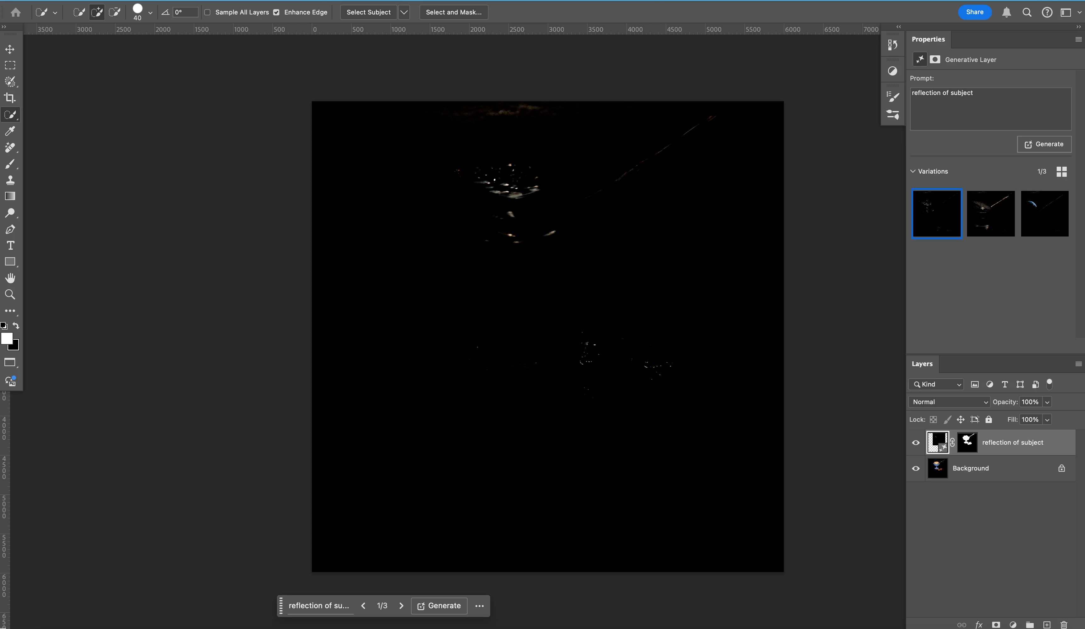 Before the new updates, I would extend the bottom of the photo to make room for a reflection. When I chose the subject it always made the reflection under the subject. Now when I try the same thing it give me reflections of nothing associated with with subject. Attaching screen shots.The first one is the original, the second is the selection and the third is what was generated. I'm not sure what changed after the new updates.