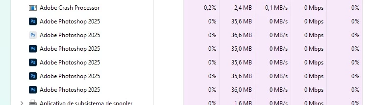 So, I went and restarted my computer. Now, I literally couldn't launch Photoshop AT ALL. Nothing, no splashscreen, no error. On the task manager, I had the "Adobe Photoshop 2025" process running, and the "Crash Processor" as well, but nothing on my screen.